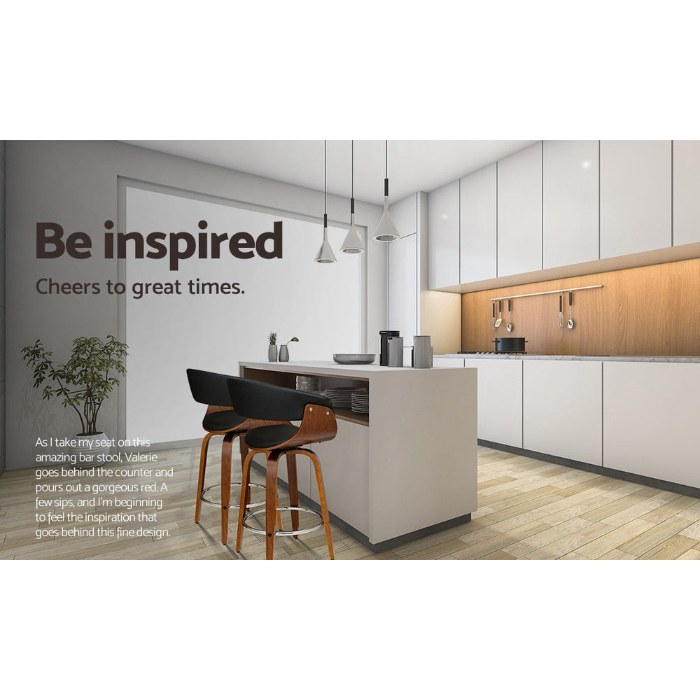 Wood, metal and deluxe PU leather in total harmony to create a luxe feel. Meticulously crafted with solid plywood with a stunning walnut finish for the frame, the bar stool features a thick padded faux leather seat that rotates fully, a mid-height backrest which provides ample support while the anti-slip floor protectors at the bottom of the legs ensure no scratches are left on the floor.