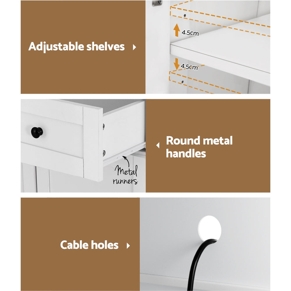 Buffet Sideboard Cabinet Cupboard Pantry Storage Shelves Hutch White