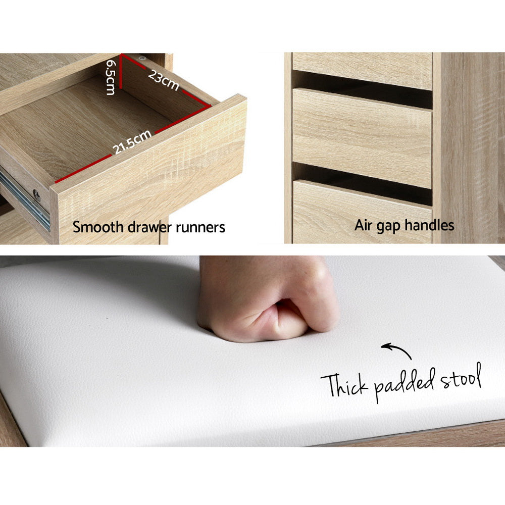 Dressing Table Stool Set Corner 5 Drawers Oak