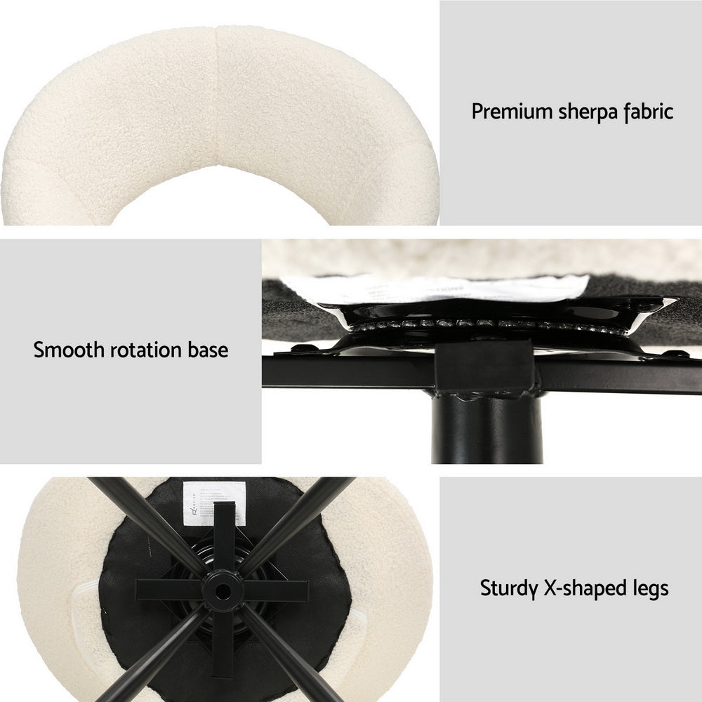 Wine, dine, and entertain guests in comfort with our most eye-catching Artiss Vita Dining Chairs. Not just for your dining room, these dining chairs are sure to make a statement in your study room, living room, and dressing room. Their versatility and ultra-modern design make them stand out. Incredibly stylish and sophisticated, our Artiss dining chairs feature inner solid construction with luxurious polyester sherpa upholstery that ensures lasting quality and ultimate comfort when seated. The dining chairs flaunt plush seats made with high-resilience foam that offer incredible comfort and support, while the 360-degree swivel base allows guests to follow every beat of conversation. Our dining chairs can hold up to 150kg weight, and their sturdy X-shaped steel legs make them incredibly reliable. Anti-slip floor protectors allow for ultimate stability and keep your floors scratch-free. Bring home our luxurious sherpa fabric upholstered Vita Dining Chairs without any hesitation. Super comfortable to relax on and with stylish, elegant, and contemporary good looks, they are a must-have piece of furniture for your home.