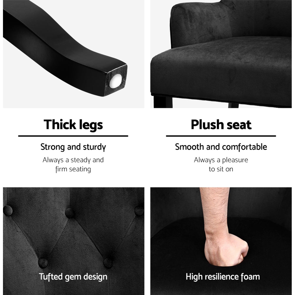 The tufted button design of the back rest, and the iconic curved back legs and turned front legs all add to the overall charisma of this classic chair.