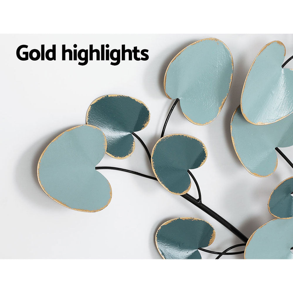 Experience sophistication with this piece of Artiss Metal Wall Art. Crafted from high-quality metal, the wall art is durable and long-lasting, ensuring it will remain a cherished addition to your home for years to come. Meticulously designed, its lustrous metallic sheen enhances interiors, blending modern aesthetics with timeless elegance. The tree-shaped piece features sleek black branches, intricate blue leaves and elegant gold edges that add a touch of sophistication. Add to any room that needs a spot of colour or a relaxing atmosphere. The piece is simple to maintain simply wipe down with a damp cloth. Comes with two wall mounting brackets so you can easily install your art anywhere in the house. Durable and captivating, the Artiss Metal Wall Art is a must-have décor for discerning collectors.