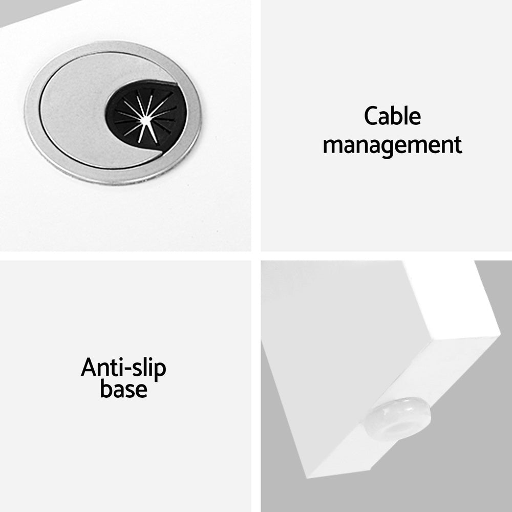 You can get really productive with our Artiss Ronald Computer Desk. With an L-shaped configuration, the desk allows you to have your attention on everything in one glance. Total efficiency and practicality. And with ample storage space from the open shelves, the desk enables all your working essentials to be close at hand. Better still, the desk also comes with a cable grommet to enable any cabling to be neatly streamlined under the desk and free the desk of any mess. Naturally, you will also appreciate the sturdy desk structure with its durable 15mm thick particle board construction and smooth melamine finish. Not least, the space-saving desk comes with an anti-slip base to ensure you work good and steady in every way.