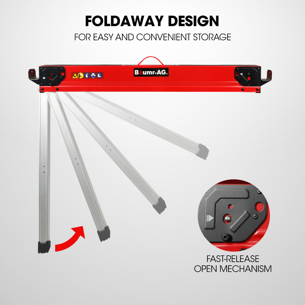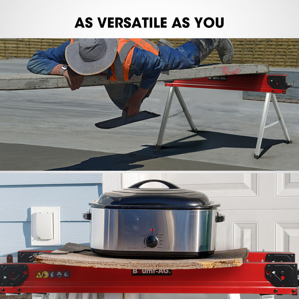 - HEAVY DUTY Baumr AG sawhorses have a capacity of 1180KG per pair. Ideal for any home or jobsite task