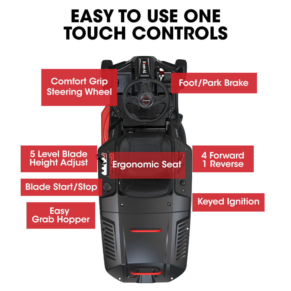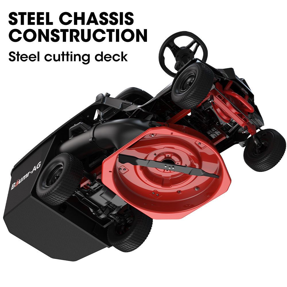 BAUMR-AG 24 Ride On Lawn Mower, Lithium Electric Start System, 6HP 224cc, 5 Cut Heights, Catcher and Mulch Kit
