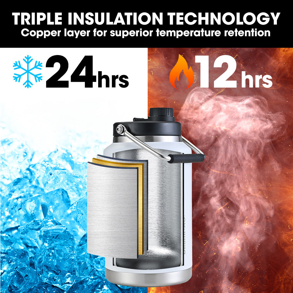 Baumr-AG 3.8L Double Wall Insulated Stainless Steel Water Bottle, Drink Jug with Handle, White