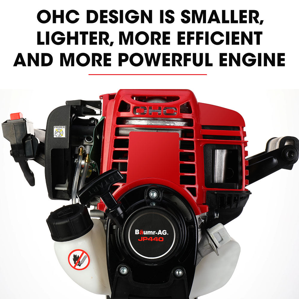 The Baumr-AG JP440 4-Stroke Petrol Jackhammer is a full commercial grade unit. Utilising a high-quality Overhead Cam Motor and mechanical components, it is attached to a super-hardened reduction gear set. This provides high power, efficiency and reliability.