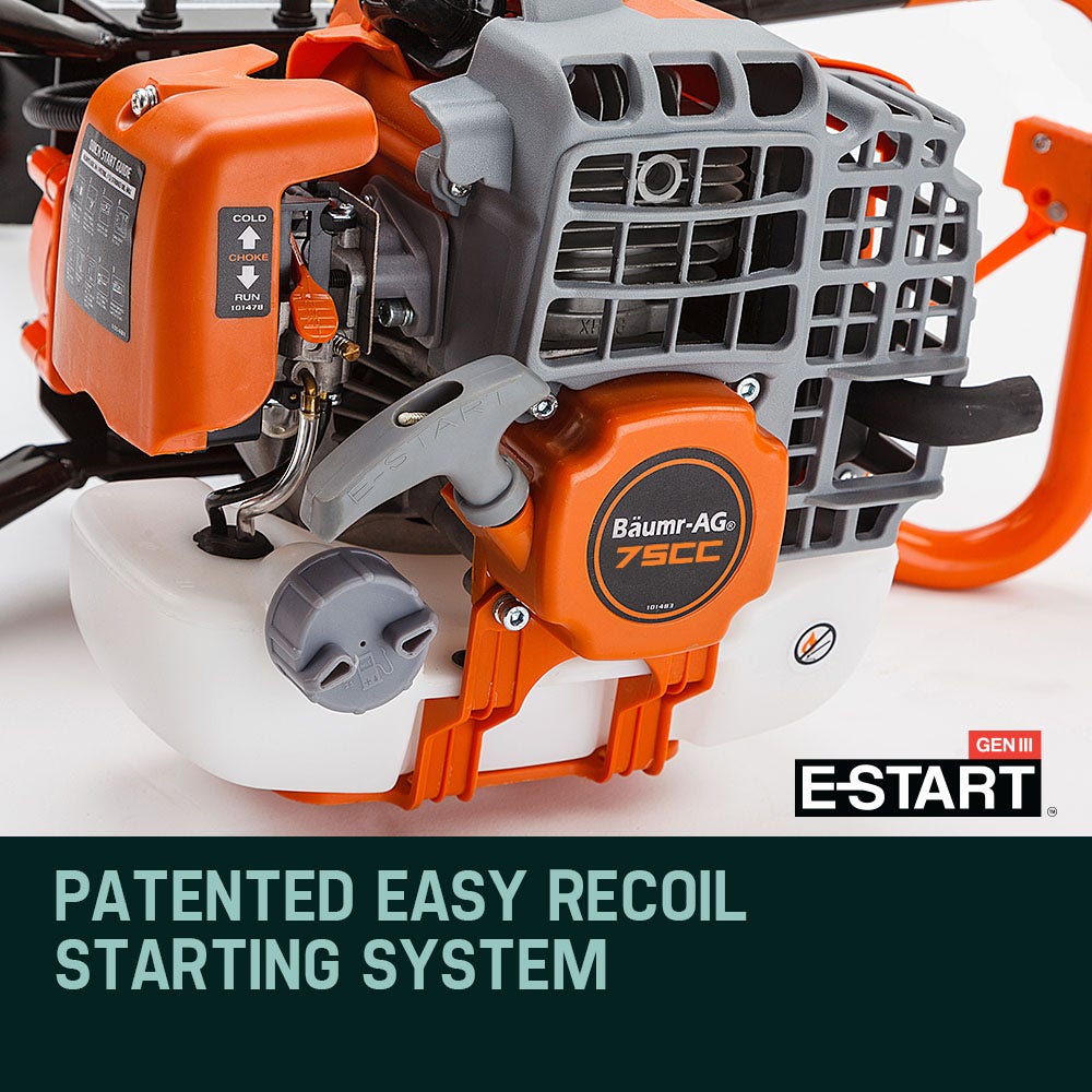 As part of Baumrs latest series, this digger features our exclusive high output 75cc powerhouse which not only deliversmore hp than outdated 82cc engines, but also keeps your auger at speed with it's unique hi-torque design. The pro-series easily conquers your commercial and industrial digging needs!