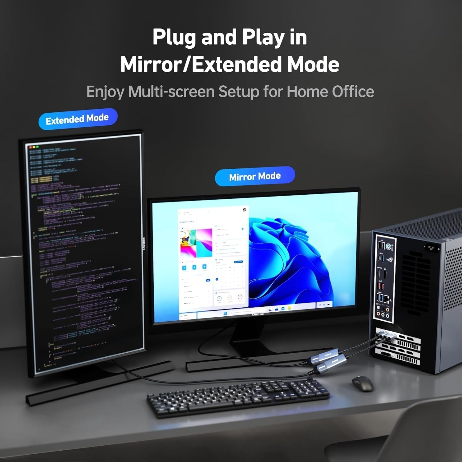 The compact-designed portable Benfei DisplayPort to HDMI adapter connects a computer, desktop, laptop, or other devices with DisplayPort port to a monitor, projector, HDTV, or other devices with HDMI port; Tuck this lightweight gadget into your bag or pocket to do a business presentation with your laptop and projector, or extend your desktop screen to a monitor or TV; A HDMI cable is required.