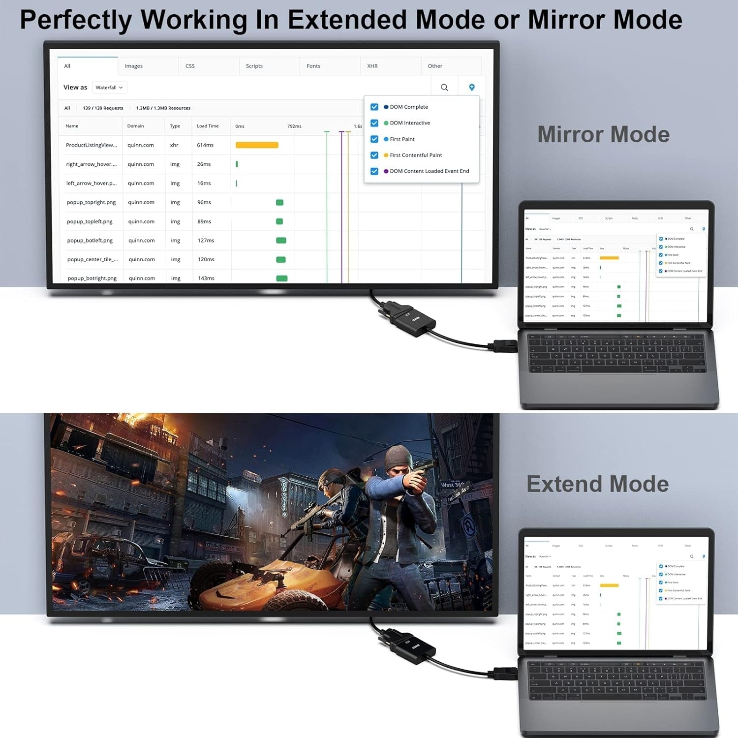 The compact-designed portable Benfei DisplayPort to DVI adapter connects a computer, desktop, laptop, or other devices with DisplayPort port to a monitor, projector, HDTV, or other devices with DVI port; Tuck this lightweight gadget into your bag or pocket to do a business presentation with your laptop and projector, or extend your desktop screen to a monitor or TV; A DVI cable is required.