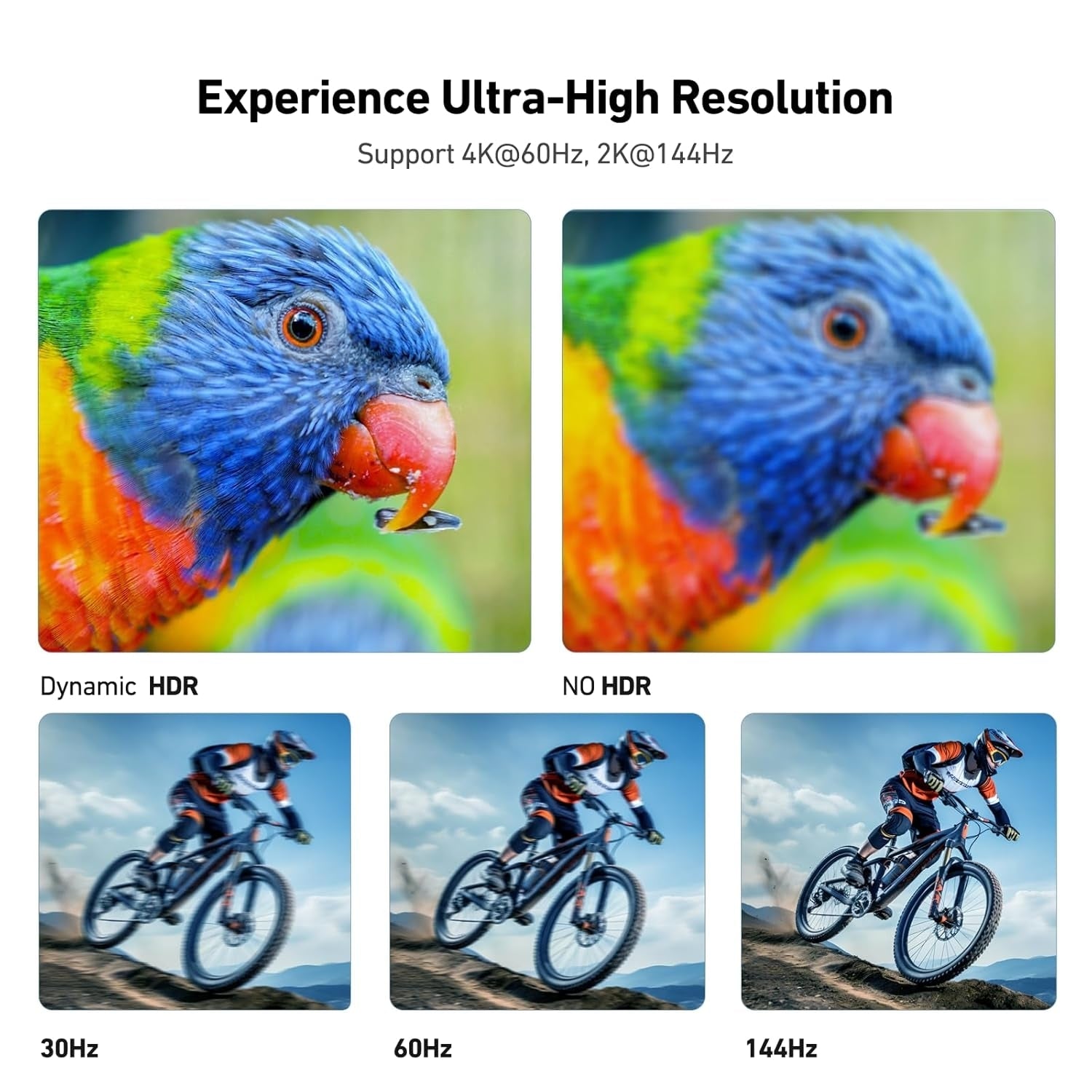 Stream 4K UHD content from your USB-C laptop(such as MacBook Pro/Air, Surface), tablet or phone to bigger display, like monitors, TV, project with HDMI input. No driver required, plug in and play. Supports resolutions up to 3840 2160@60Hz including, 2K@144Hz, 1080P, 720p, 1600x1200, 1280x1024 for high definition monitors or projectors; Note: one-way cord, exclusively from USB-C host devices to HDMI displays.