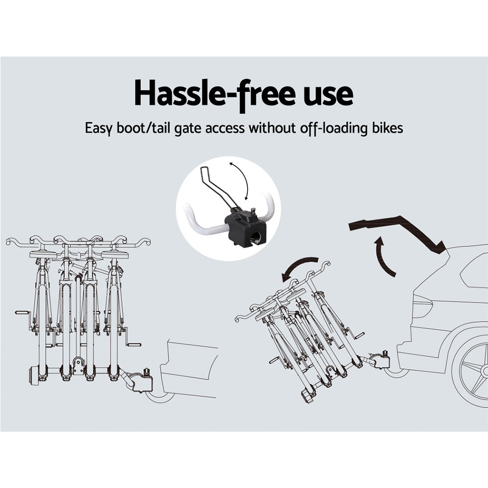 4 Bicycle Bike Carrier Rack Car Towbar Hitch Ball Mount Tail light Silver