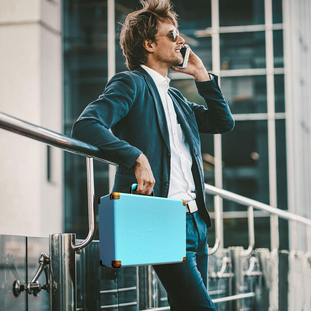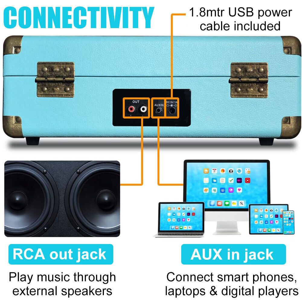 Blue Retro Briefcase Vinyl Record Player Suitcase 3 Speed Turntable Stereo Christmas