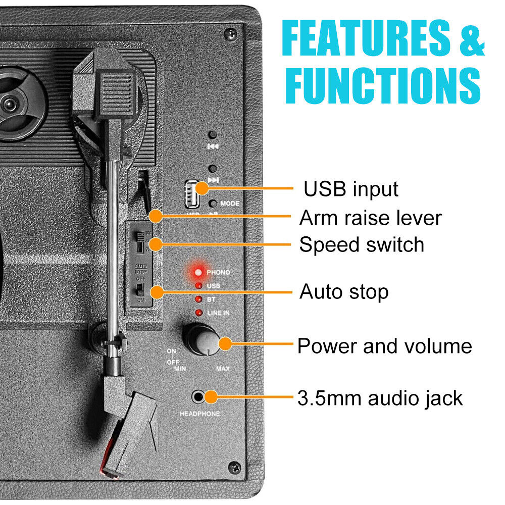 Built-in full range stereo speakers: This is the perfect solution for listening to favorite record collections. It allows you to play all your 7 ", 10 "and 12" records.