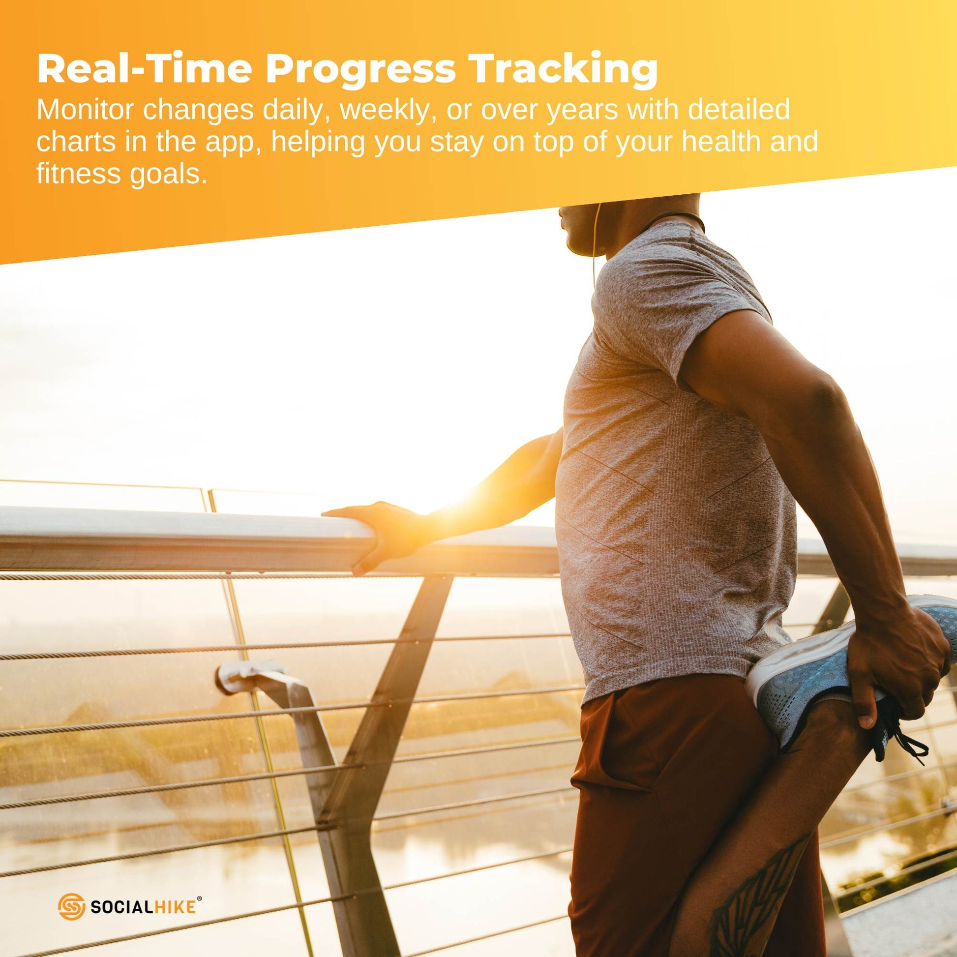 - Real-Time Progress Tracking – Monitor changes daily, weekly, or over years with detailed charts in the app, helping you stay on top of your health and fitness goals.