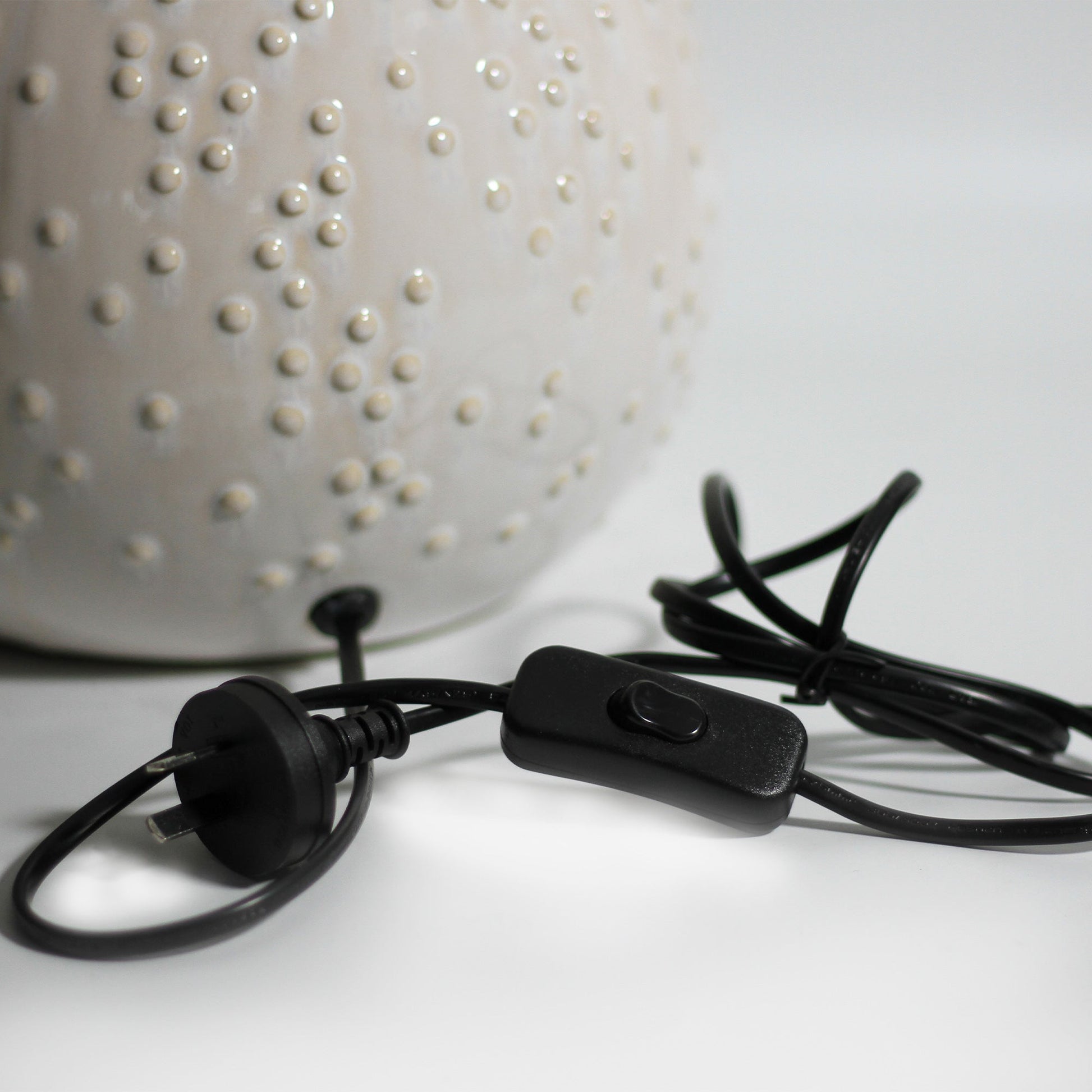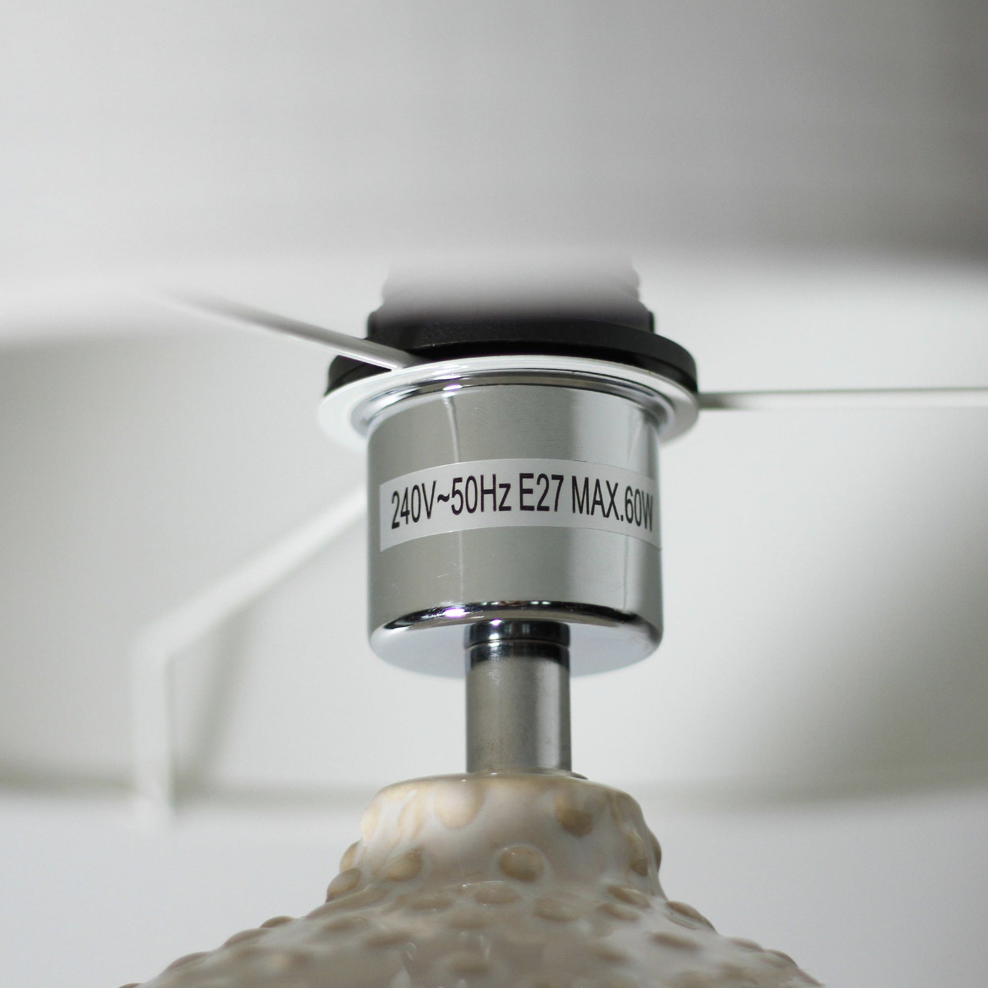 The Boden Ceramic Table lamp is a fun and vibrant design that compliments pastel colours, fun interior styles and brightly coloured, rich interior spaces. The feature ceramic base is inspired by an irregular spherical shape starring a scattered bubbled effect that offers a tactile surface that playfully catches the light on the gloss finish.