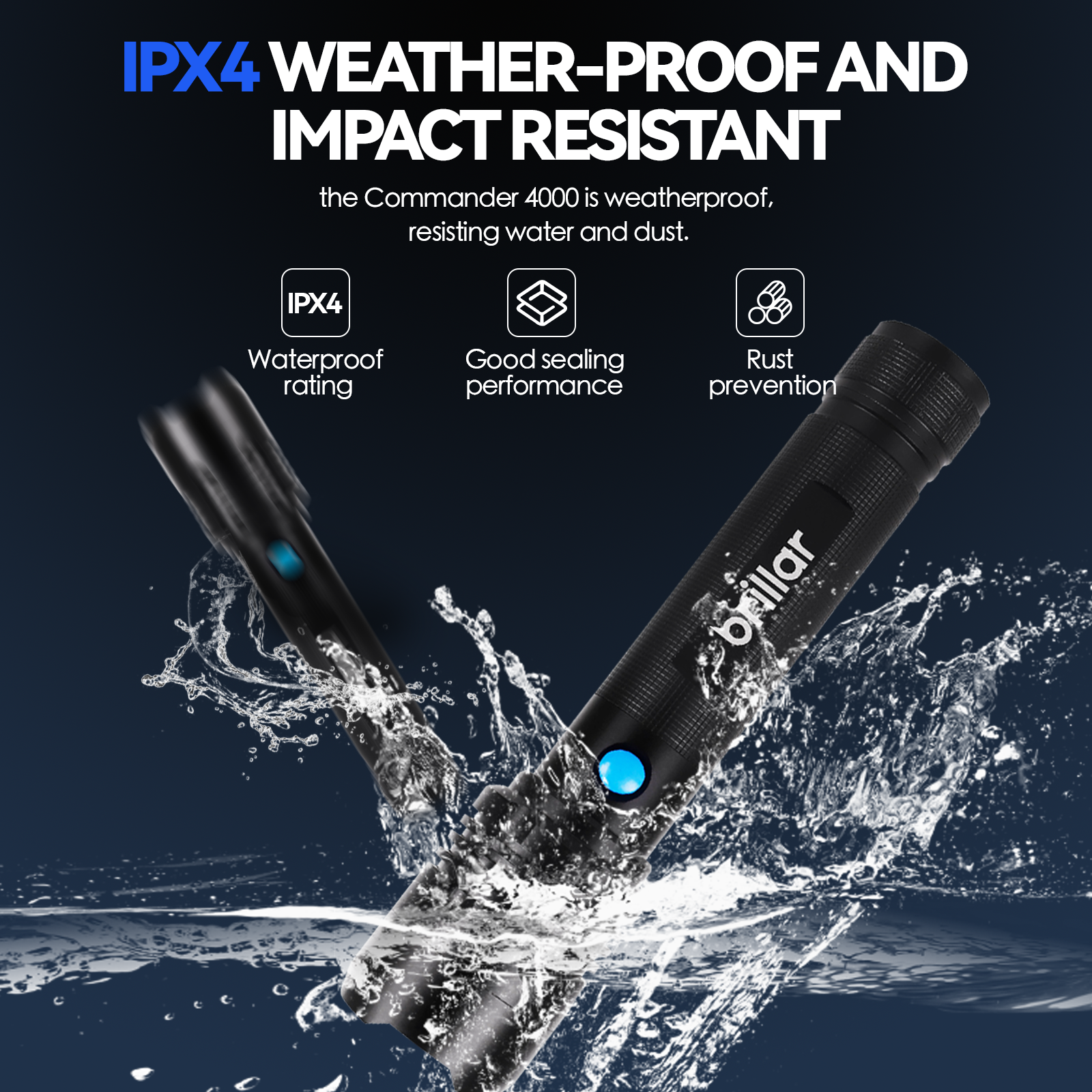 Brillar Commander - 4000 Lumen USB Rechargeable Torch