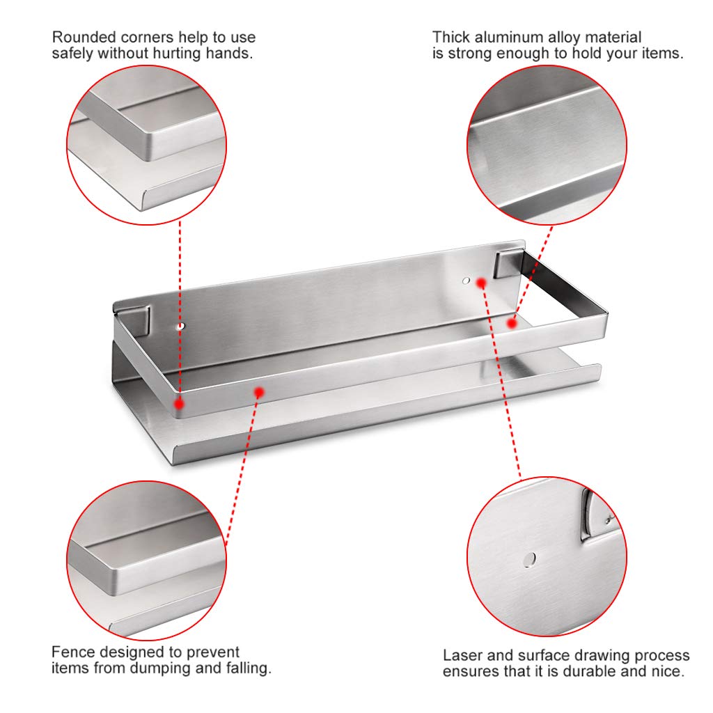 Brushed Bathroom Shower Shelf Kitchen Rack Storage Shelves Shampoo Holder Organizer