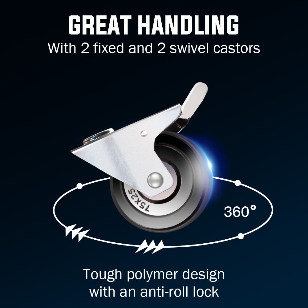 - Non-drifting with 2 x fixed and 2 x 360-degree castors for stability and easy handling