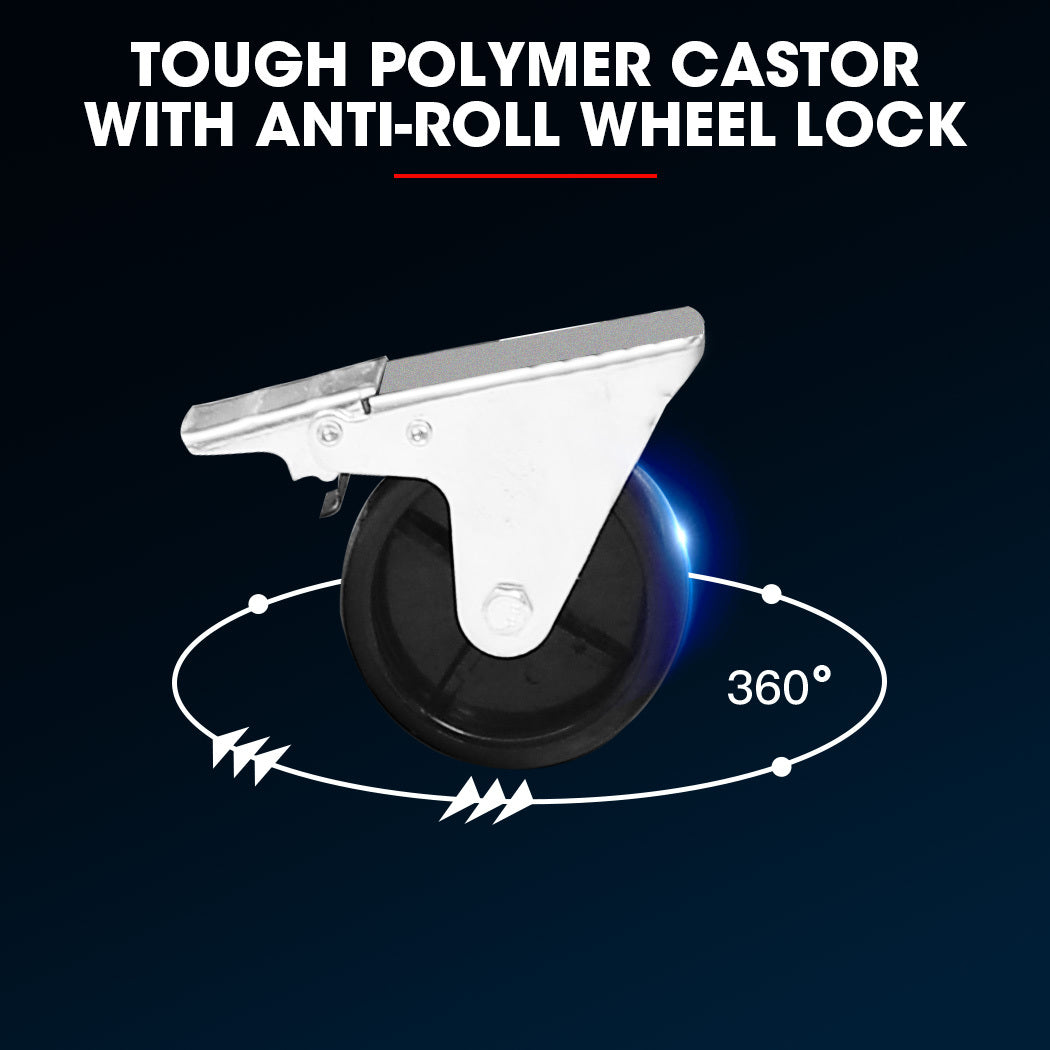The Bullet 8 Drawer Tool Box Cabinet comes with a key lockable upper chest where valuable or often 'borrowed' items can be stored. The drawers have varying depths and sizes to accommodate all types of equipment and parts. The lower cabinet features a self-contained key lockable door that stays open and out of the way for easy access to its contents. This space is large enough to keep a range of bulkier items. The cabinet sits on top of four caster wheels with 2 x caster locks, so you have the option to secure it in one place or move it with you around a workspace. This compact double unit fits discreetly in even the smallest spaces or storage areas and features a superior tubular cam-lock system for optimal security.