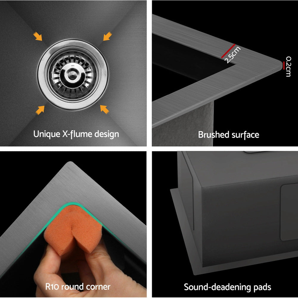 The Cefito Handmade Stainless Steel Sink is built to exacting standards so that you get the very best of quality materials and craftsmanship. It is crafted from heavy-duty food grade 304 stainless steel, unlike others that are made from inferior 201 grade or 304 imitations. Built to be scratch-resistant, oil-resistant and more importantly, bacteria-free, the silky-smooth satin-coated stainless-steel sink also features an X-flume design for easy drainage, deep and wide bowl for practicality, R10 rounded corners for safety and easy cleaning, anti-condensation paint, and sound-deadening pads. Suitable for drop-in, flush-mount or under-mount installation, our stainless steel sink should have a definitive place in your uncompromising kitchen.