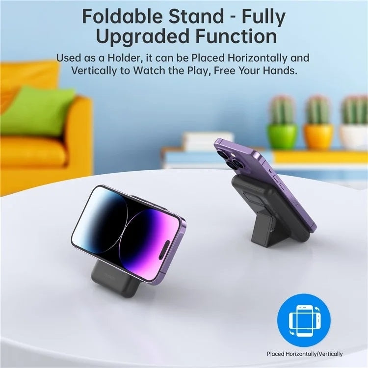 Just magnetically attach it to the back of your phone, and you can enjoy 7.5W wireless fast charging; the foldable stand provides stable support, allowing you to charge your phone while watching it.