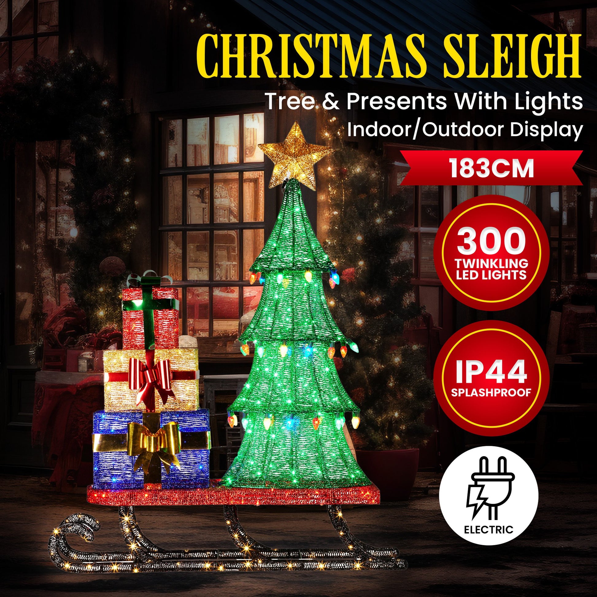 Christmas Display Sled 183cm With Tree And Presents Led Lights & C9 Bulbs