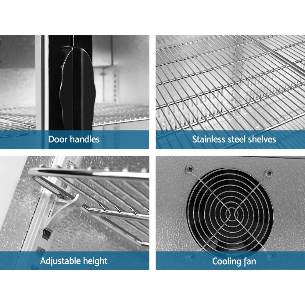 Our spacious Devanti Bar Fridge with double doors is great for keeping a variety of food and beverages chilled and cooled. Designed with adjustable temperature settings between 2鎺矯 and 10鎺矯, the energy-efficient bar fridge lets you set your desired coolness and freshness. Other great features include fan-assisted cooling, LED temperature display, heavy-duty adjustable shelves, double-glazed tempered glass doors, built-in handles and consistent refrigeration to name a few. The bar fridge is also totally eco-friendly with its R600a freon-free refrigerant and well-made for robust use, such as the pressure-injected foam insulation and built-in LED light to ensure operation is smooth, quiet and hassle-free. The fridge also comes with built-in locks to keep the contents safe and secure, especially useful in a retail environment after you close for the night. Perfect for commercial environments such as bars, dessert shops, cafes and restaurants, the Devanti Bar Fridge is a cool investment time and again.