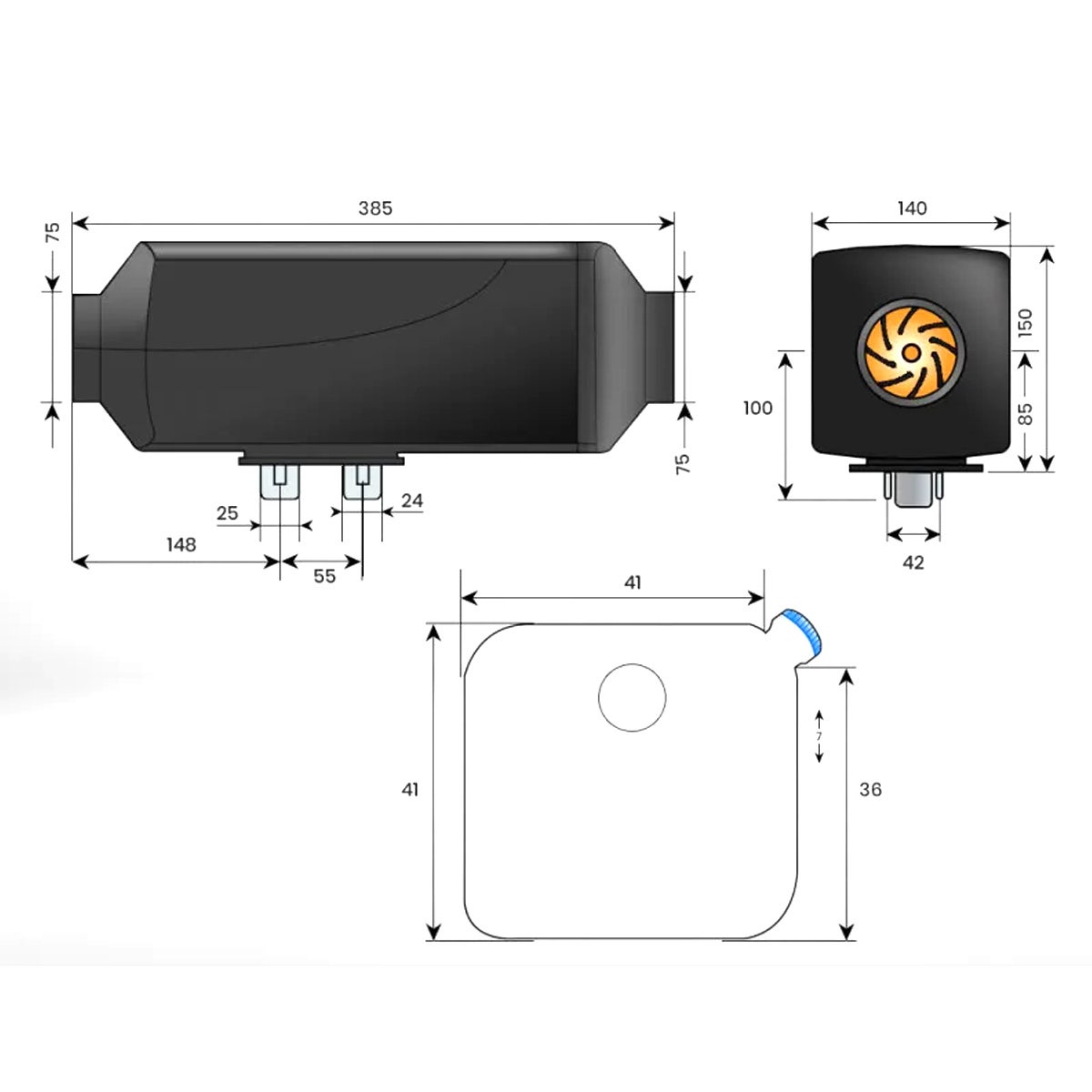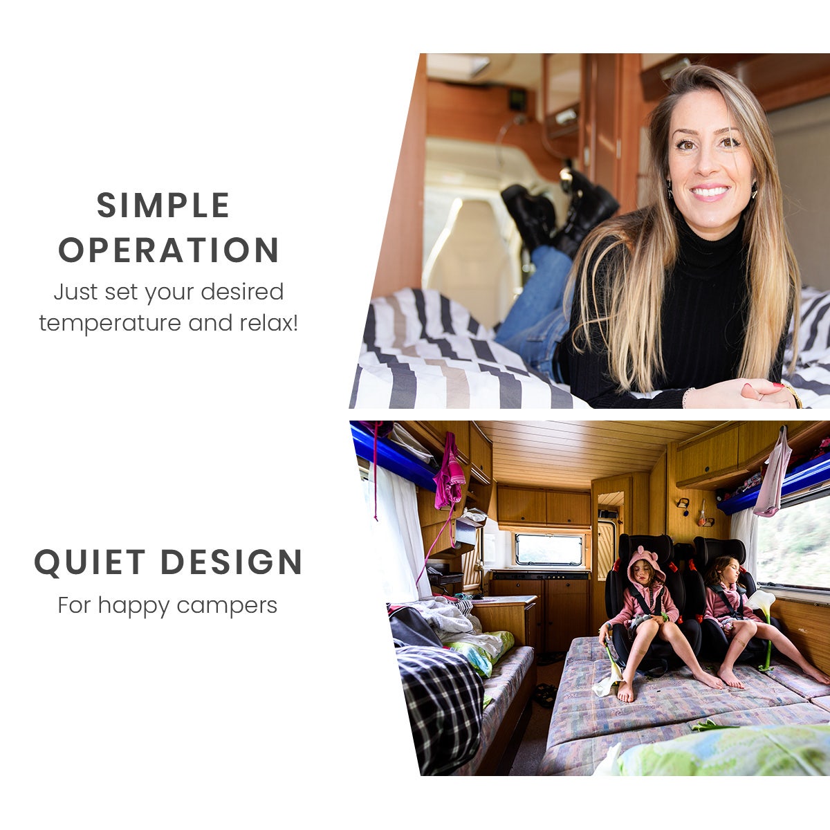The Thermomate offers powerful, efficient performance thanks to a unique heatsink design that is cast from premium 1050 grade aluminum offering superior thermal conductivity. Whether you're in a caravan, motorhome, camper trailer, truck or boat your space will be toasty in no time, and any frost on windows will quickly disappear. Once the target temperature is reached, the Thermomate is surprisingly quiet, so you'll have happy campers and everyone will enjoy a good night閳ユ獨 sleep.