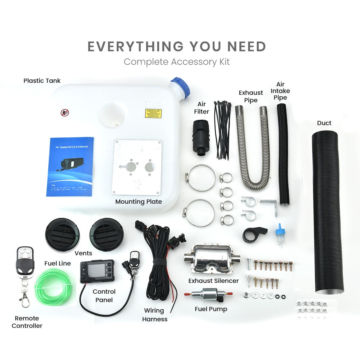 The compact design allows for easy and space-saving installation within the interior, or even under the floor of vehicles. The Thermomate Diesel Heater comes complete with all accessories you need, making it possible for anyone handy to install. Make the smart investment in your comfort and trust Thermomate for your portable heating needs.