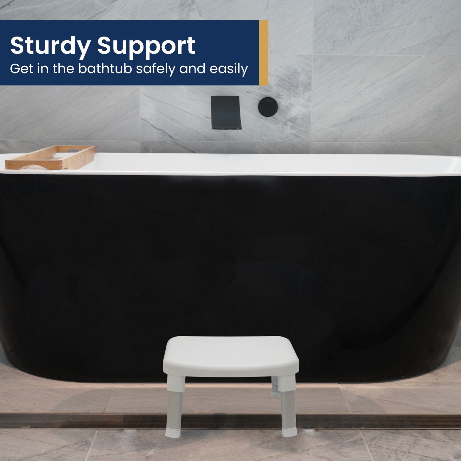 It has a large stepping/seating area for extra support and a heavy-duty aluminum frame with height-adjustable legs. Easy to assemble and use, this bathroom step is a stylish and practical choice for your home!