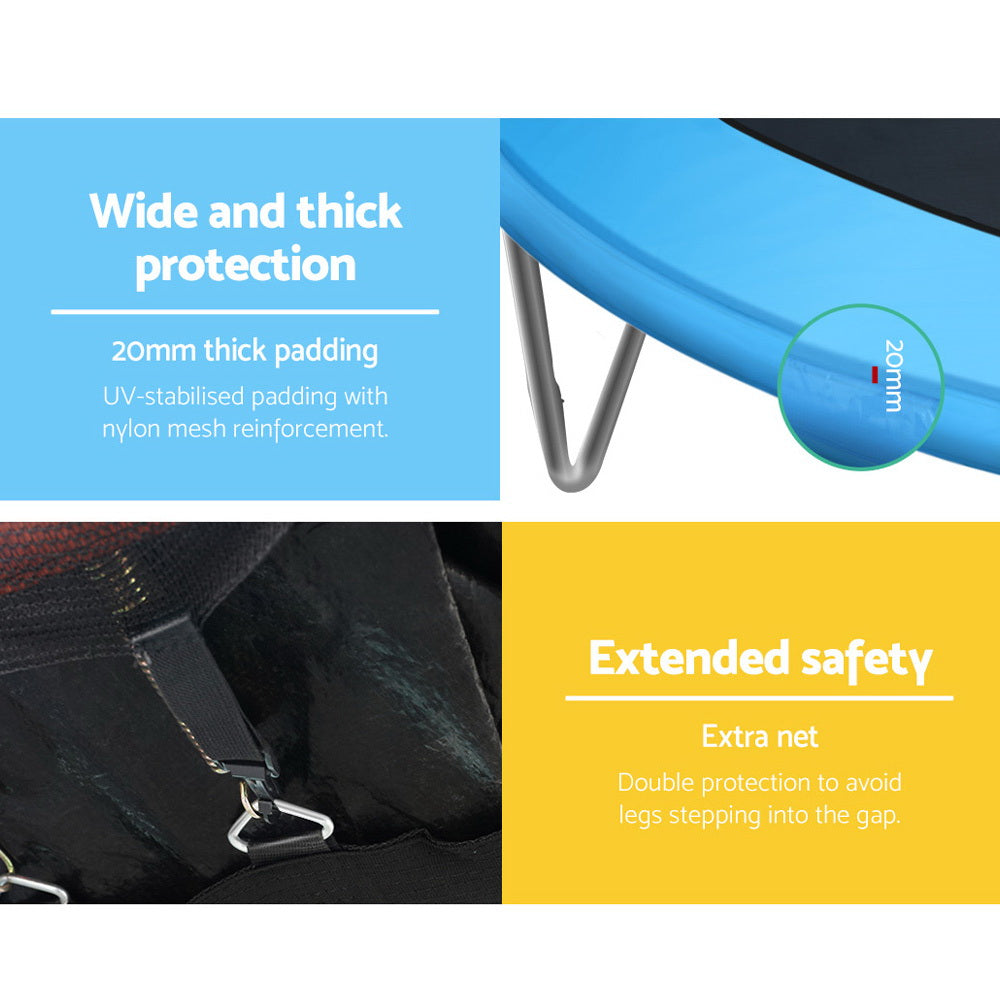 Bounce to your heart's content with our Trampoline. With its superior bounce characteristics featuring 72-piece triple rate springs, the 12-foot trampoline enables safe and durable bouncing with no worries. The heavy-gauge steel framework is designed to handle all robust play and is UV-tested for quality and reliability. Other great features include 8 posts for strong support, 20mm thick padding, anti-graze mat, safety netting and a double-lock zip-and-clip entry. So jump to it and order our trampoline today.