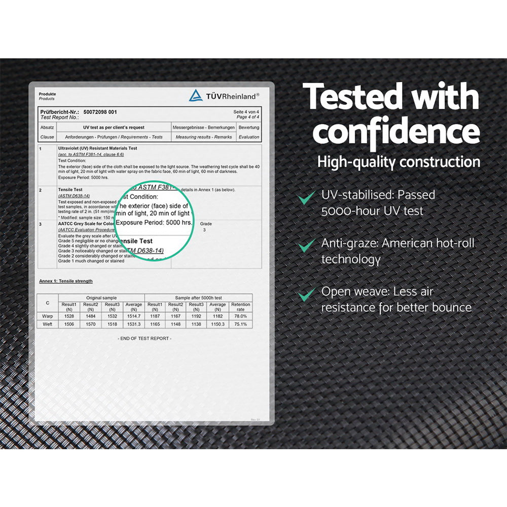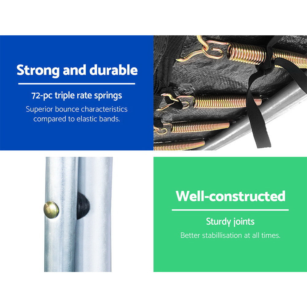 Bounce to your heart's content with the Trampoline. With its superior bounce characteristics featuring 72-piece triple rate springs, the 12-foot Trampoline enables safe and durable bouncing with no worries. The heavy-gauge steel framework is designed to handle all robust play and is UV-tested for quality and reliability. Other great features include a curve design for more rigidness, 20mm thick padding, anti-graze mat, safety netting and a double-lock zip-and-clip entry. Not least, the included basketball hoop, basketball and pump really adds an awesome fun factor to the entire ensemble. So jump to it and order the Trampoline today.
