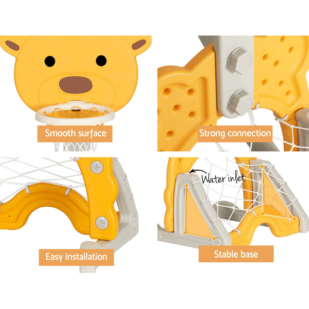 Kids Basketball Hoop Stand Adjustable 5-in-1 Sports Center Toys Set Yellow
