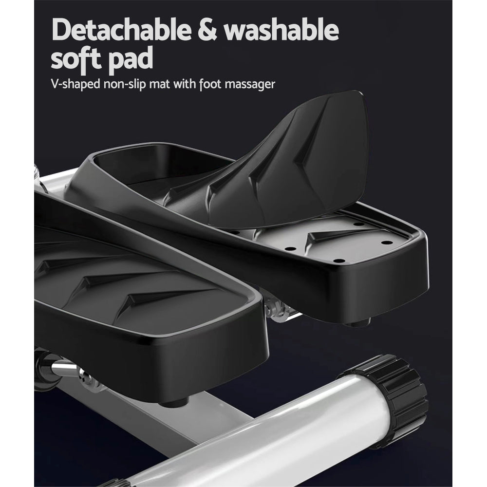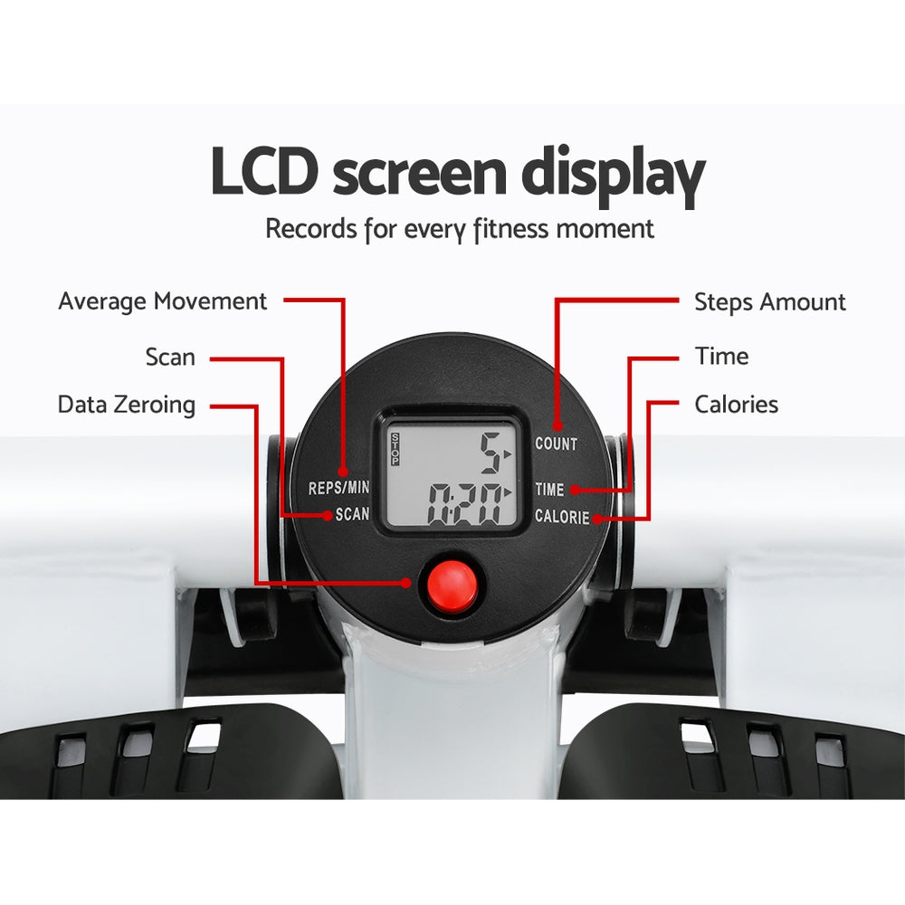 Step up your fitness game with a Mini Stepper from Everfit. Target your thighs, calves, waist and hips without leaving your home. The Mini Stepper is portable thanks to its miniature size, making it perfect for use under your desk, in the living room, or on the go. The stepper has an anti-slip pedal surface and edge for safety and stability, and your package includes a non-slip rubber mat to keep everything in its place. The stepper has a high weight capacity of 150kg and operates quietly for a pleasant exercise session that won’t disturb your guests or family. The LCD screen will show you all your fitness data as you exercise, and the detachable soft pedal pad is easy on your feet and easy to maintain. It requires no assembly and folds neatly away when not in use. Best of all, the stepper comes with two bonus resistance ropes so you can perform a variety of exercises. Get fit today from the comfort of your home or office with the versatile Everfit Mini Stepper.