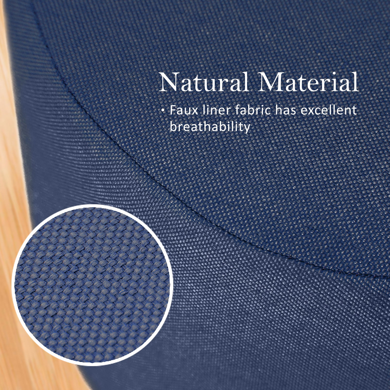 Fabric Ottoman Round Wooden Leg Foot Stool - DARK BLUE