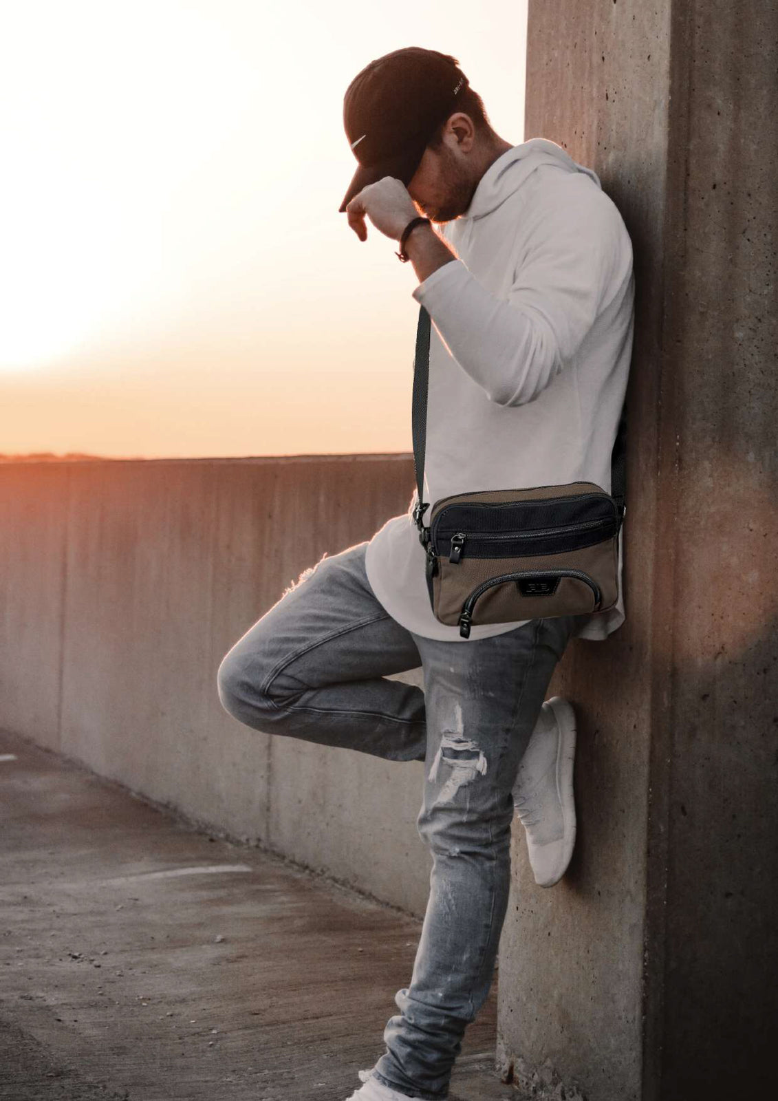 FIB Byron East West Sling Shoulder Bag Travel Adjustable Strap - Brown