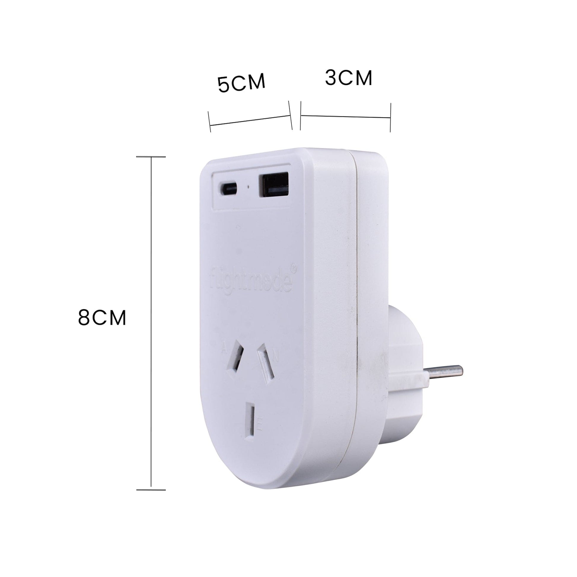 Flightmode Outbound AU/NZ to EUROPE/BALI Travel Adaptor with USB Type C & A