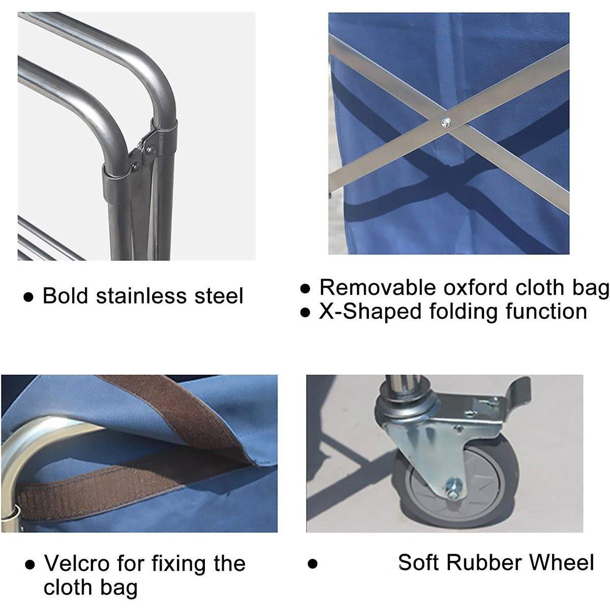 This versatile cloth cart is designed for efficient organisation, perfect for cleaning services, homes, or office spaces. Featuring separate sections for dry and wet items, it ensures easy sorting and transport. Equipped with high-quality universal silent wheels, the cart offers smooth movement while minimising noise. The foldable design allows for easy storage when not in use, making it ideal for areas with limited space. Built with durable materials, this cart is ideal for laundry, cleaning, or general organisation tasks.