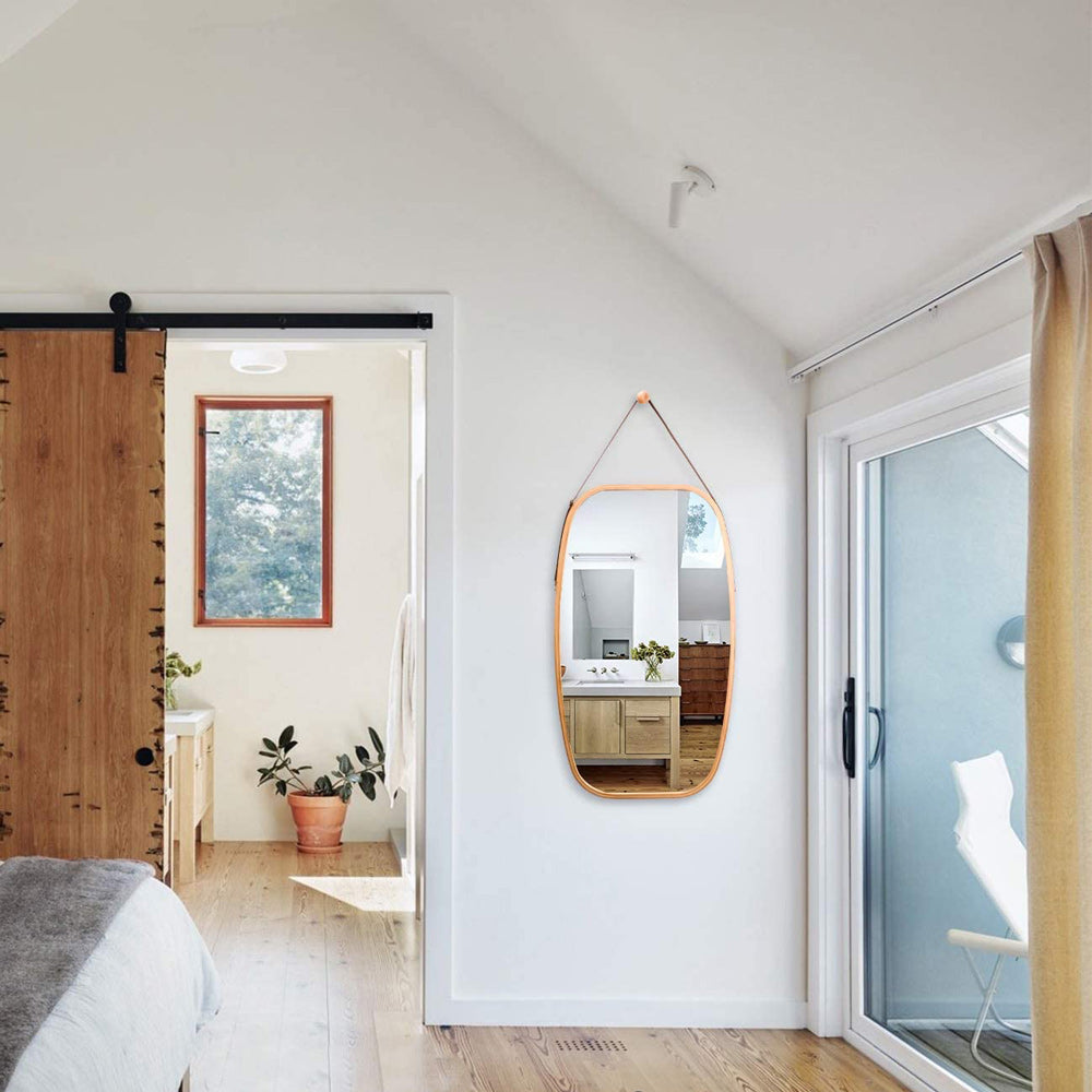 Full Length Bathroom Wall Mount Hanging Bamboo Frame Mirror Adjustable Strap Wall Mirror Home Decor