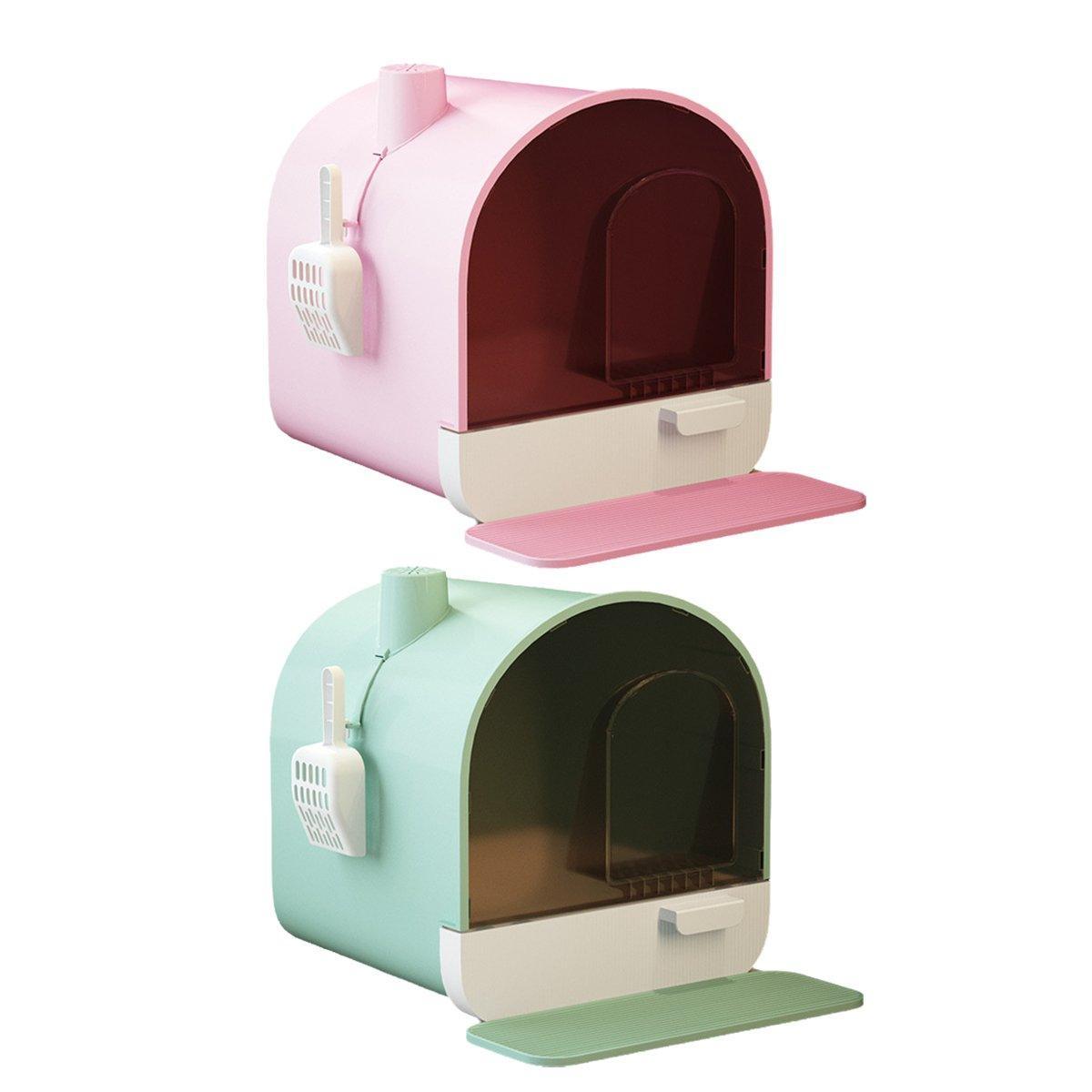 Fully Enclosed Cat Litter Pan Large Litter Box with Drawer Cat Toilet Tray - Green
