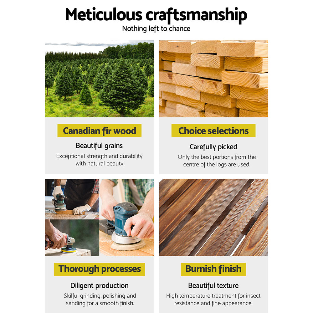 Enhance the look of your garden with our beautiful Gardeon wooden garden wheel. It makes an elegant upgrade. Featuring classic wheel design with spokes, our wooden garden wheel will provide both decorative and functional appeal. It閳ユ獨 crafted from solid fir wood with durable iron that helps you achieve a rustic look for your garden and ensures sturdiness and durability. The wooden wheel comes with four buckets with iron ring and strong and reliable fixings for a better hold, and the triangle-shaped base gives the wooden wheel extra strength, support, and stability and prevents tilting. Additionally, its solid construction makes the wheel sturdy and capable of handling weight. So rest assured that our garden wooden wheel will withstand the test of time. Our Gardeon wooden garden wheel also offers natural resistance to rot and pests, and its weatherproof design makes it ideal for outdoors. Shop our Gardeon wooden garden wheel to give to garden a rustic and classic look and feel.