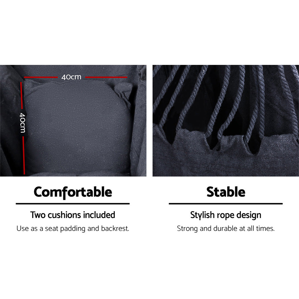 Gardeon hanging hammock chair set is a piece of excellent furniture perfect for outdoor and indoor use. It is made from quality polyester cotton blend fabric and has a solid timber rail for strength and durability, and the powder-coated steel frame is designed to be weather and rust-resistant. Our hammock chair can hold up to 120kg in weight. Plus, it閳ユ獨 easy to install with one single attachment point for absolute safety. This versatile furniture set is suitable to be placed by the poolside, in the backyard, or in any corner of your home. Not least, this chair offers ample support to your body.