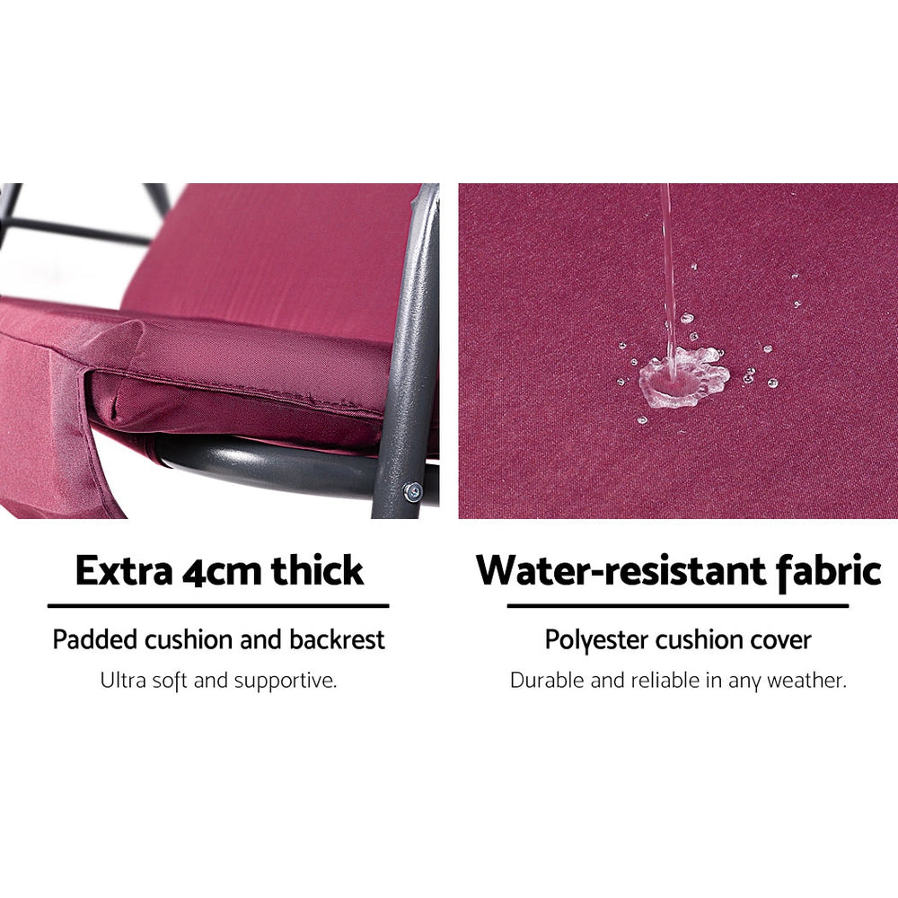 Outdoor Swing Chair Garden Bench Furniture Canopy 3 Seater Wine Red