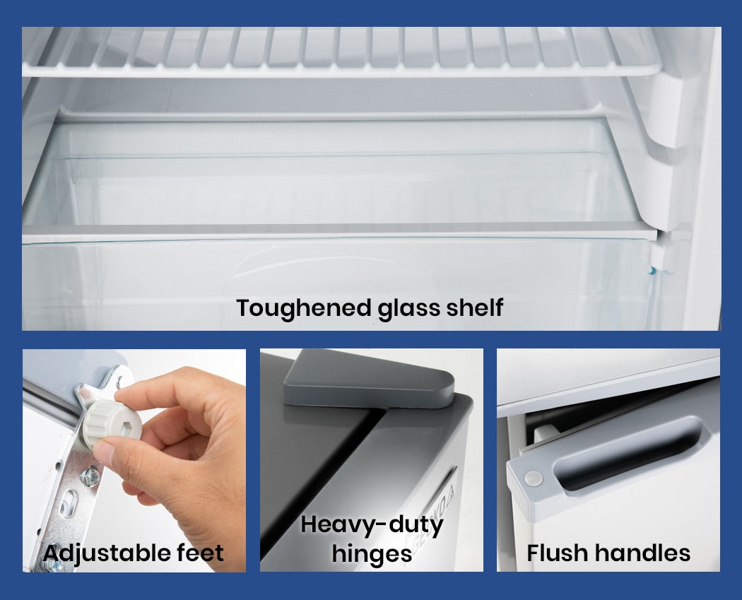 It boasts a generous capacity. Comfortably cater for long road trips in your motorhome or caravan. It has a 27L freezer compartment, and 68L refrigerator section with crisper, adjustable shelves and convenient egg tray. The rugged hinges, locking doors, adjustable feet and the ability to operate at up to a 30-degree incline make it ready for camping off the beaten path, or use on a yacht.