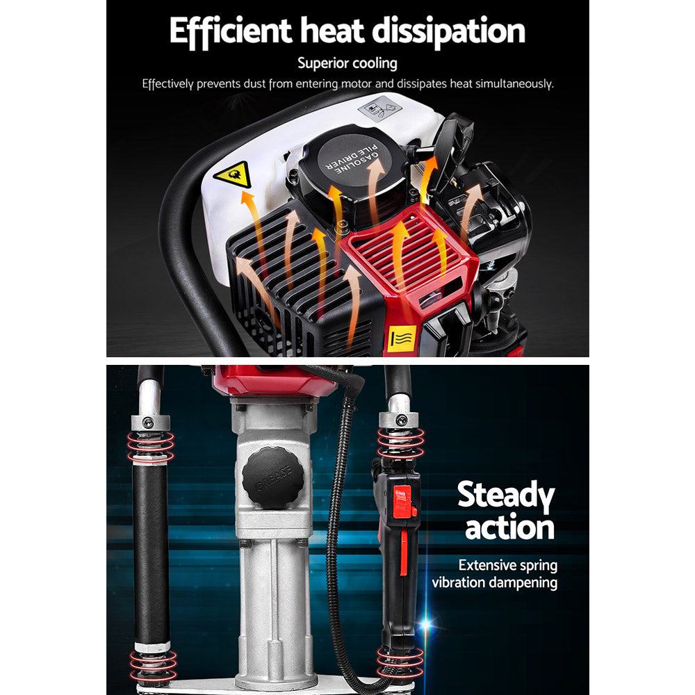 Petrol Post Driver 2-Stroke 55CC Rammer Pile Star Picket Fence Hole Red