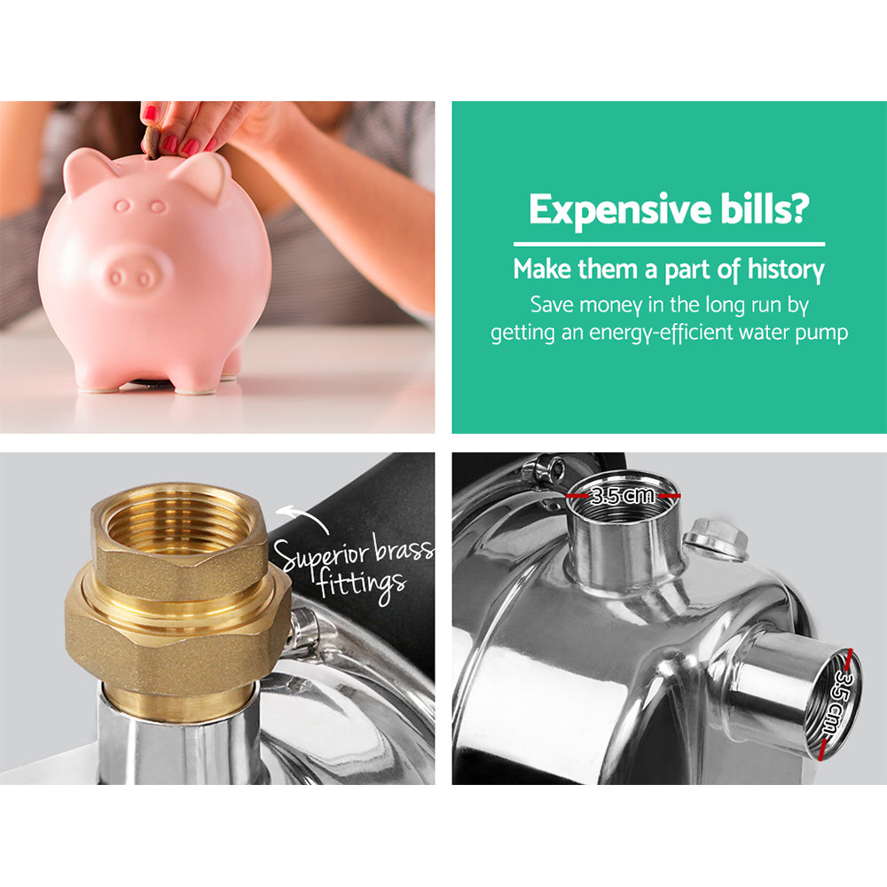 Made from durable stainless steel and alloy, this garden pump is the perfect water pump for your home and garden. It is ideal for connecting your rain tank or to irrigate your garden. This pump produces 72L/min makes it effortless in irrigating the garden or veggie patch. The pump has overheated and overload protections; makes it very safe to use.