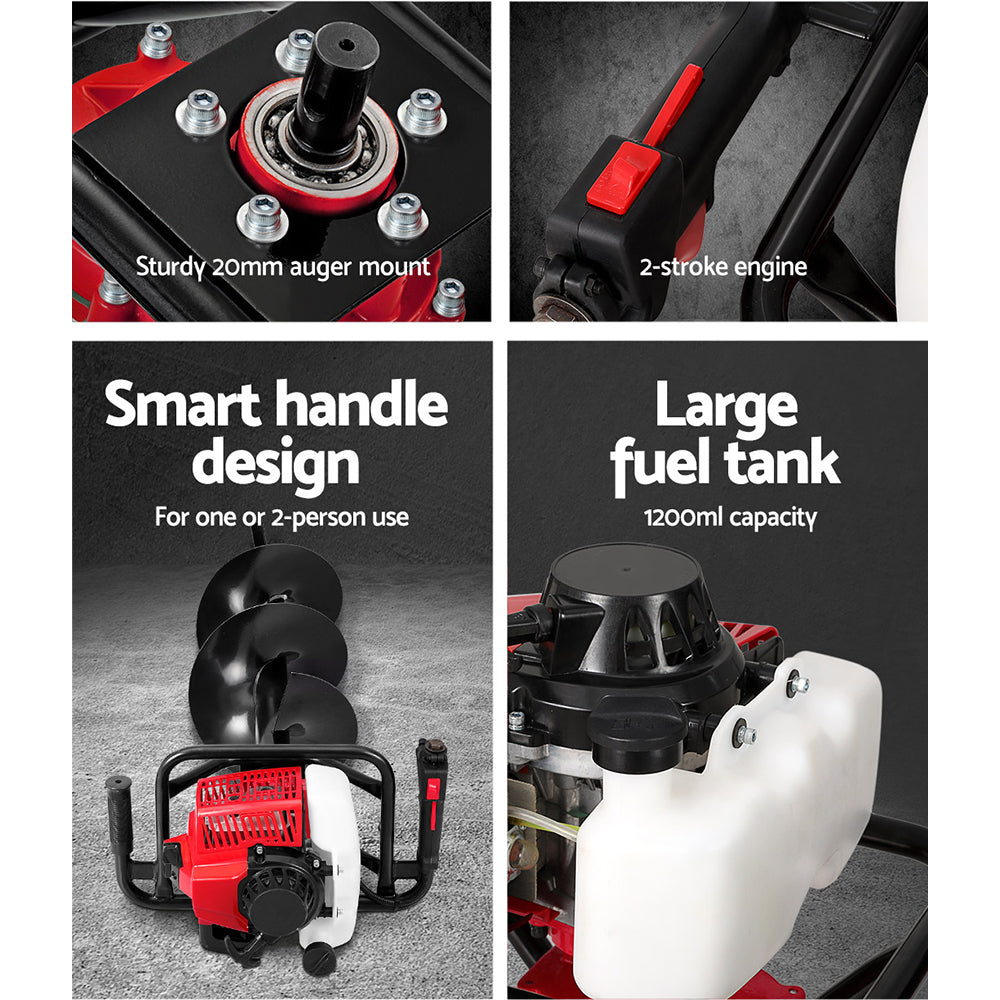 92CC Post Hole Digger 300mm Petrol Drill Extension Auger Bits