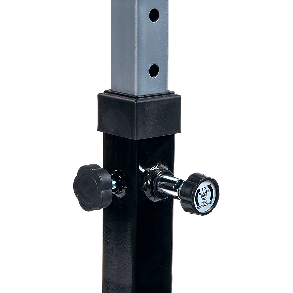 - Double-locking safeguard system with one lockdown knob and a spring-loaded knob