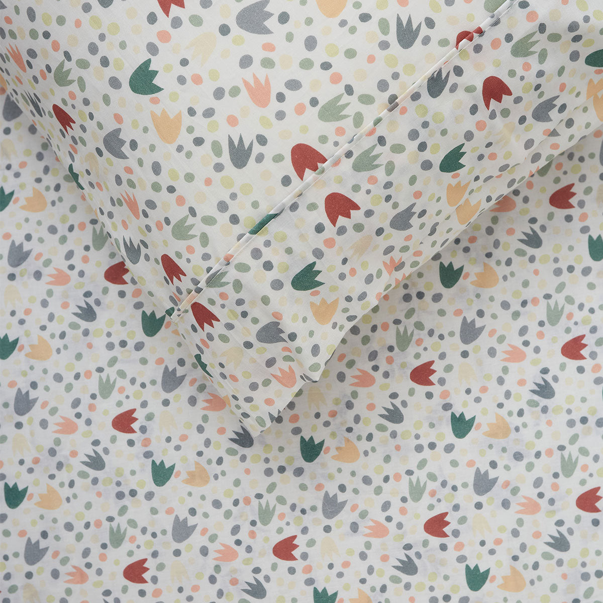 The Dino Mania Green Cotton Sheet Set by Happy Kids adds a fun and playful touch to your child's bedroom. Featuring a lively dino-themed print with a mix of earthy and vibrant tones of green, white, yellow, red, blue, and grey, this set sparks imagination while providing a cosy sleep space. Made from soft, breathable cotton, it offers a comfortable and restful night. Perfect for little adventurers who love dinosaurs!